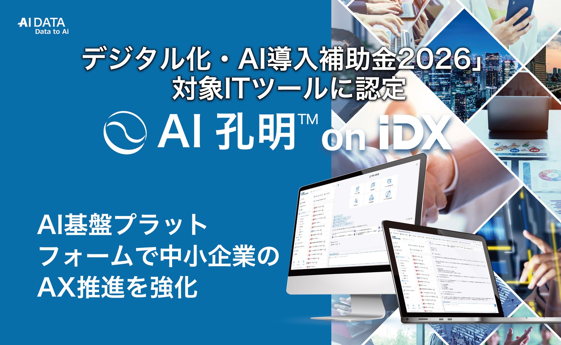 AIデータ社、「デジタル化・AI導入補助金2026」の対象ITツールに認定! AI基盤プラットフォーム「AI孔明 on IDX」で中小企業のAX推進を強化