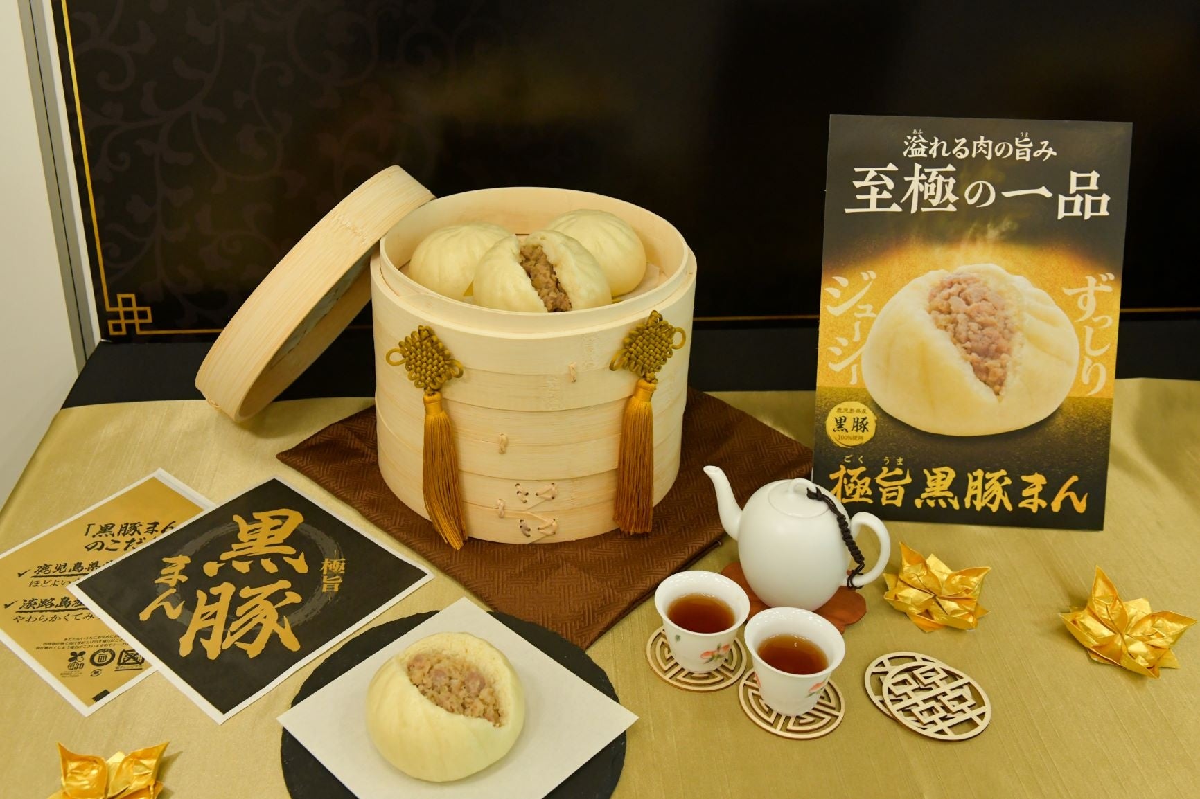 【内容】中具の豚肉は鹿児島県産黒豚を100%使用し、玉ねぎは淡路島産玉ねぎを使用しています。また、こだわり原料として黒豚まんに合う塩を約40通り試して、導きだしたアルペンザルツ岩塩を具材に使用することでお肉の旨みを最大限に引き出しました。小麦粉の一部に石臼挽き小麦粉を使用することで、もっちり・しっとりとした食感に加えて小麦の甘みと旨みを感じられる生地となっております。さらに、中具と生地重量のバランスにもこだわりました。