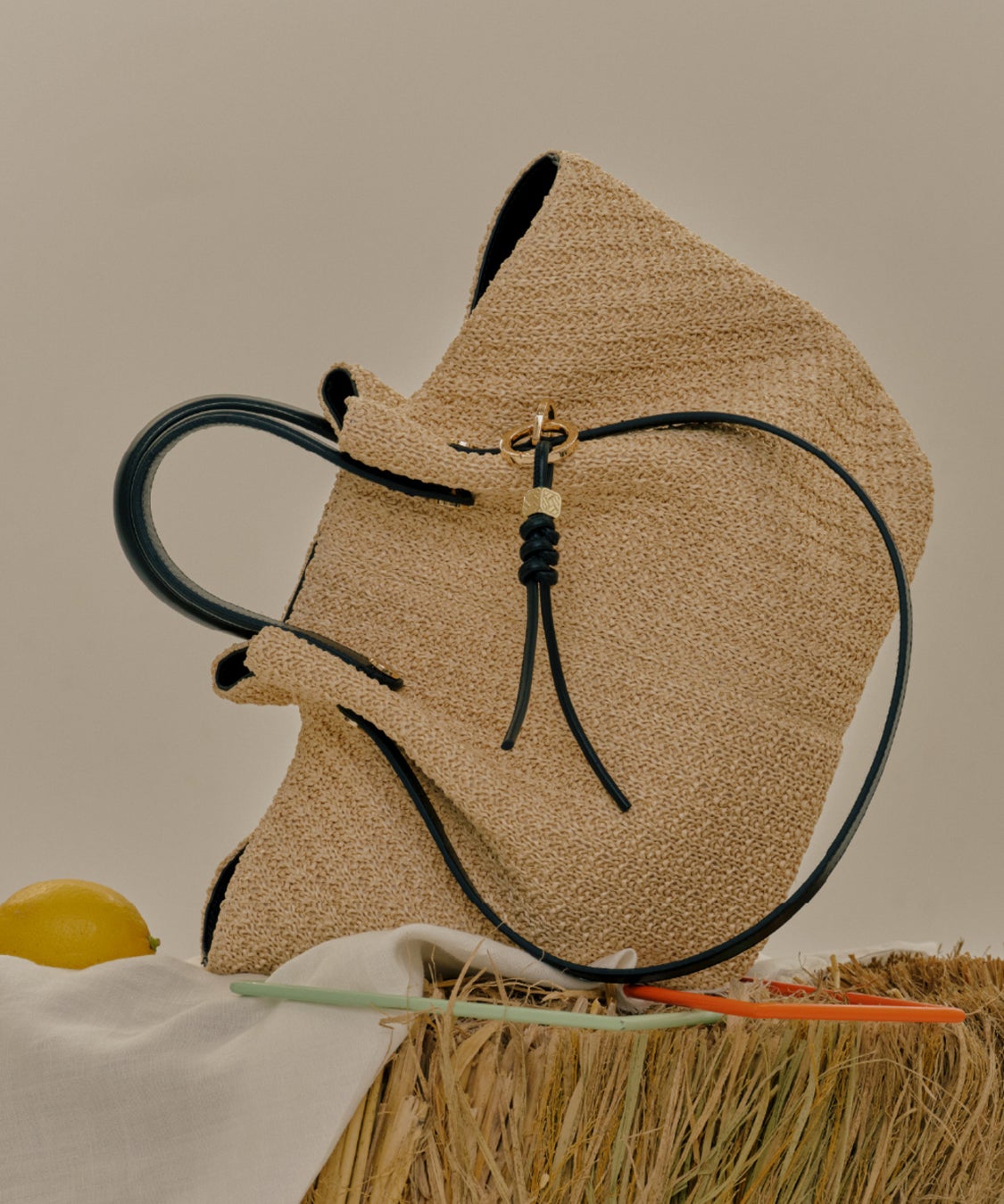 極限まで軽さを追求したデザイン。ハンドルにはスライドパーツを取り入れ、動きのあるディテールをプラス。長さのアレンジが自在で、ハンドバッグとしてもショルダーとしても美しく持てる一品。