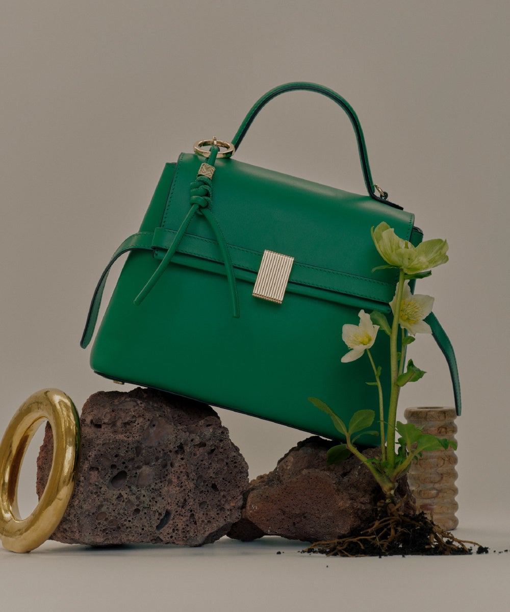 カステラのようなふんわりとした丸みを持つお菓子〈BOLO〉 その名の通り、ラウンド型のゴールドパーツとスムースレザーを採用し、 ホールドすると女性らしい自然な丸みが生まれます。 今の気分を取り入れたクラッチショルダーは、柔らかな印象に寄り添う優しいカラーでラインアップしました。