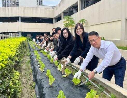 Ⅰ館屋上部にて菜園を設置し、収穫された野菜は、地元林口エリアの近隣にお住まいのお客さまに無償で提供。