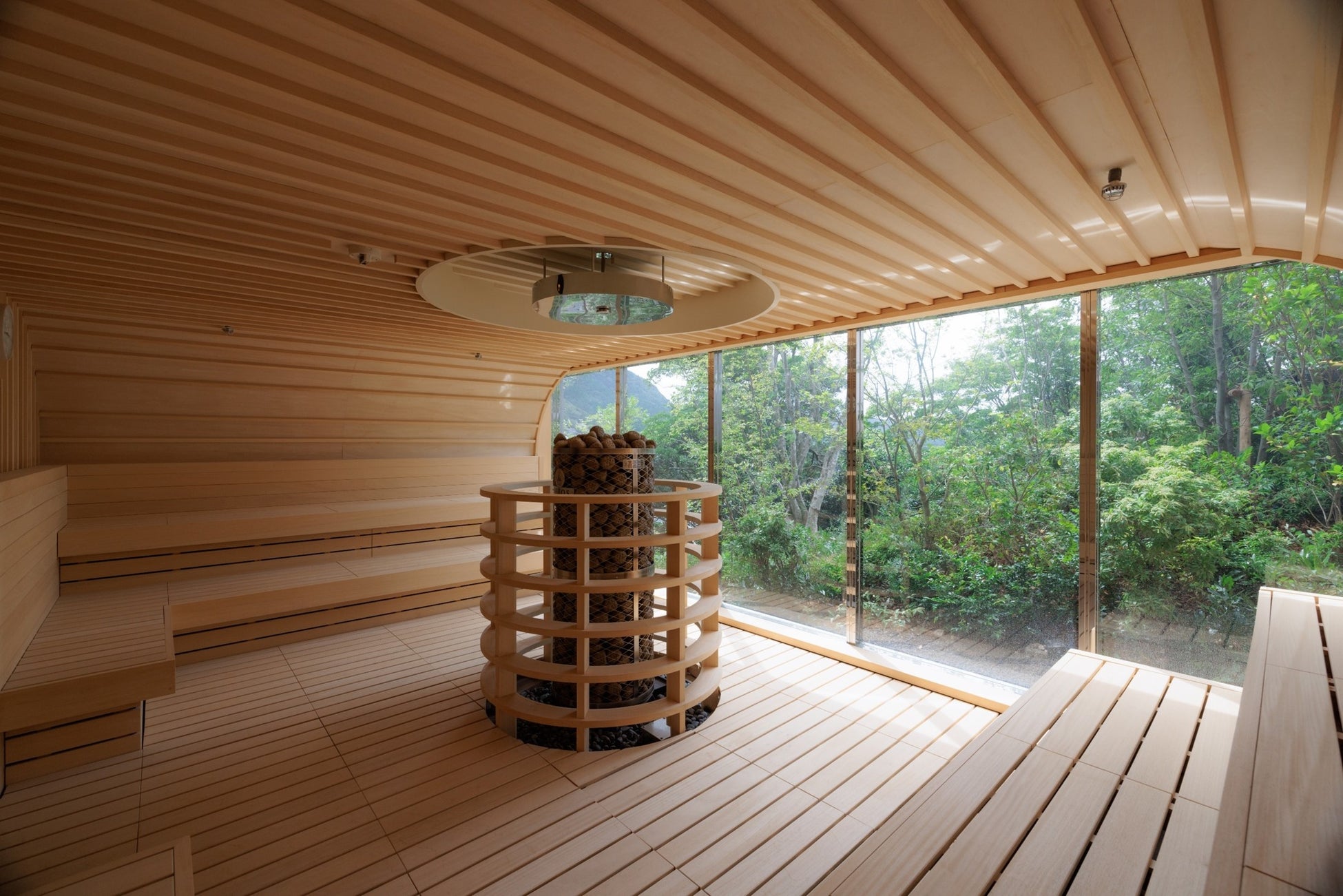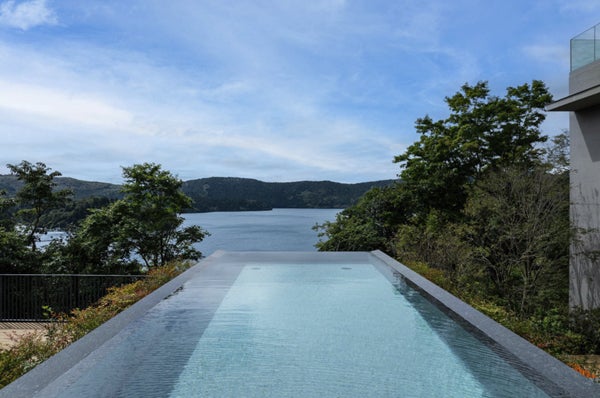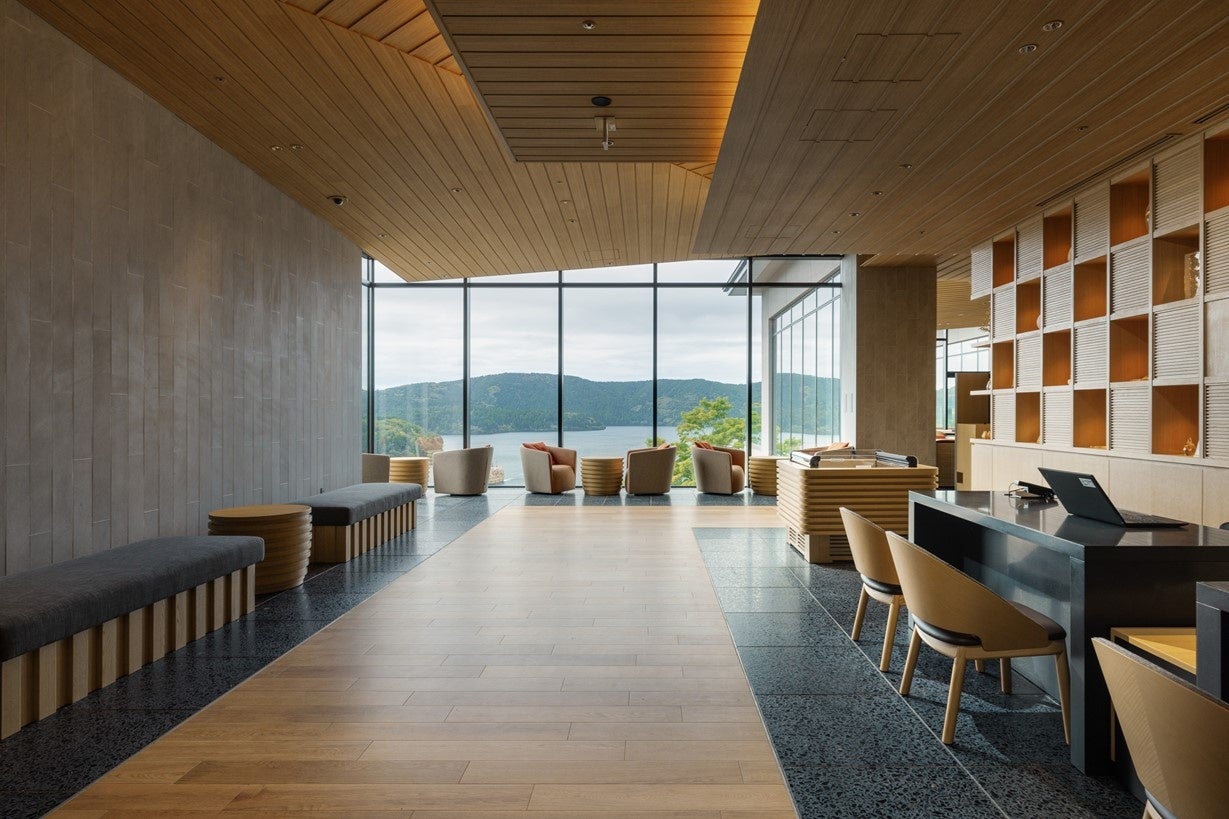 お客様をお迎えするアライバルラウンジおよびエントランスホールでは、箱根細工をモチーフとした木々の折り重なるようなデザインを施し、箱根ならではの時間を演出いたします。そのほかの共用施設として、温泉大浴場、屋内外プール、3 種のサウナ(ドライサウナ、スチームサウナ、ハーブサウナ)、ファイヤーピットテラス等の多様な共用施設を備えており、大切なご家族やご友人の方などとの特別な時間と団欒のひと時をご提供いたします。