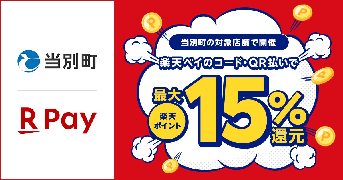 楽天ペイメント株式会社(以下「楽天ペイメント」)は、運営するキャッシュレス決済サービス「楽天ペイ」において、北海道石狩郡当別町が2025年11月1日(土)から11月30日(日)まで実施する「当別町キャッシュレス買い物応援キャンペーン」に参加することをお知らせします。
