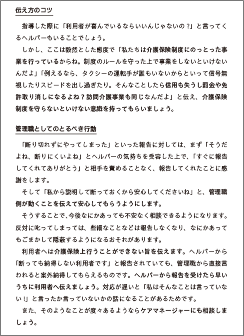 また、管理職や研修担当がスタッフに効果的に伝えるためのコツもわかるため、日々の業務場面や研修に最適な1冊です。