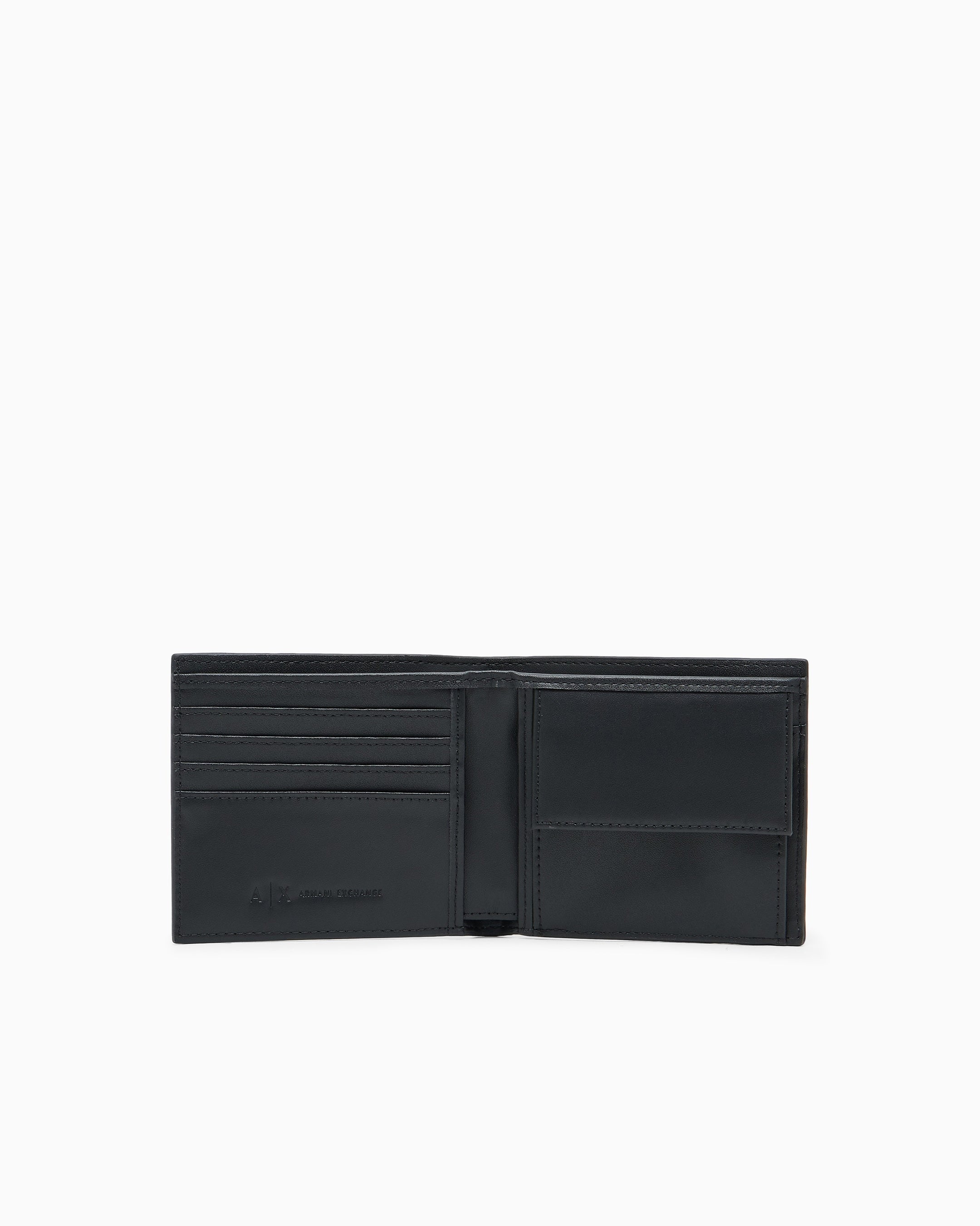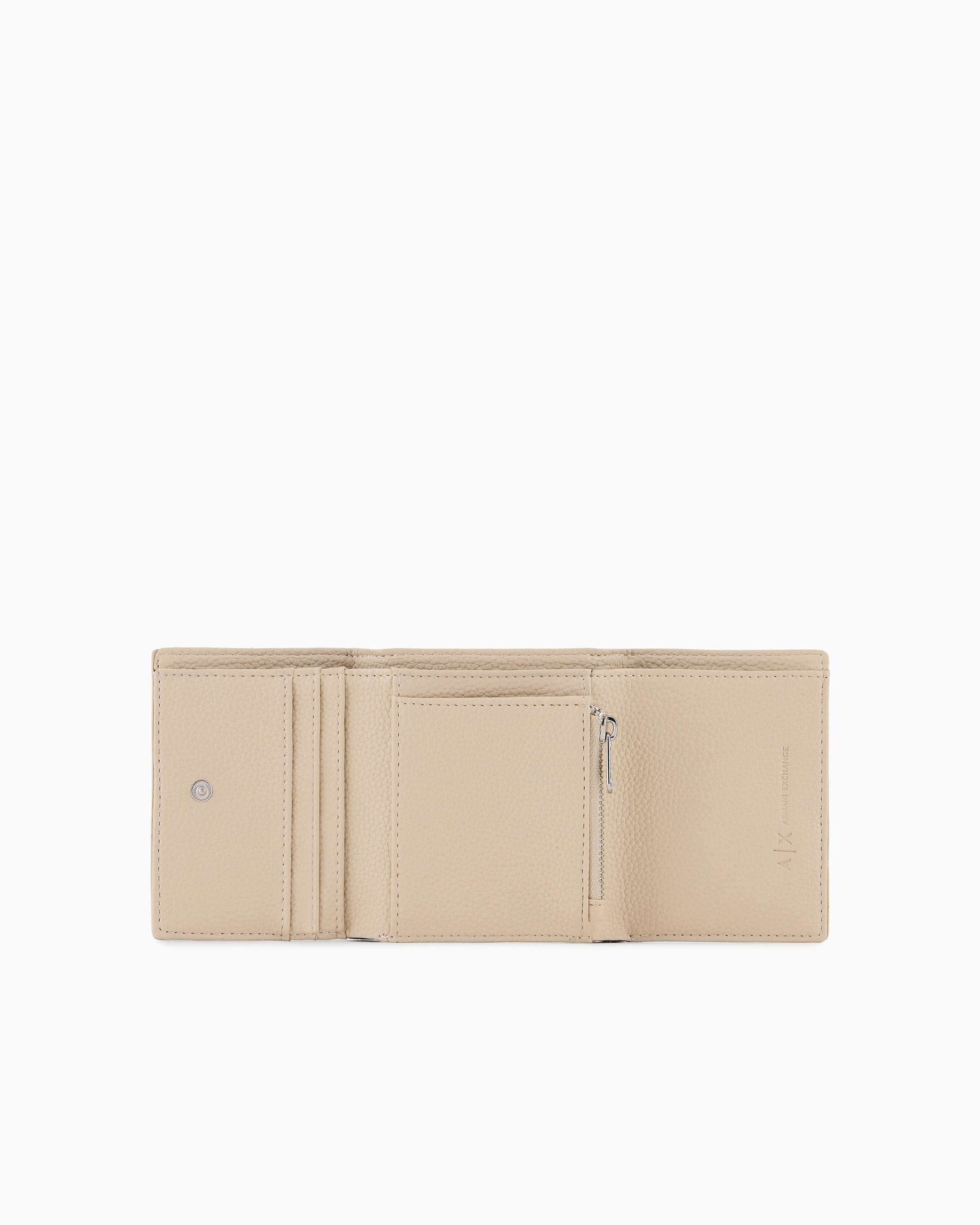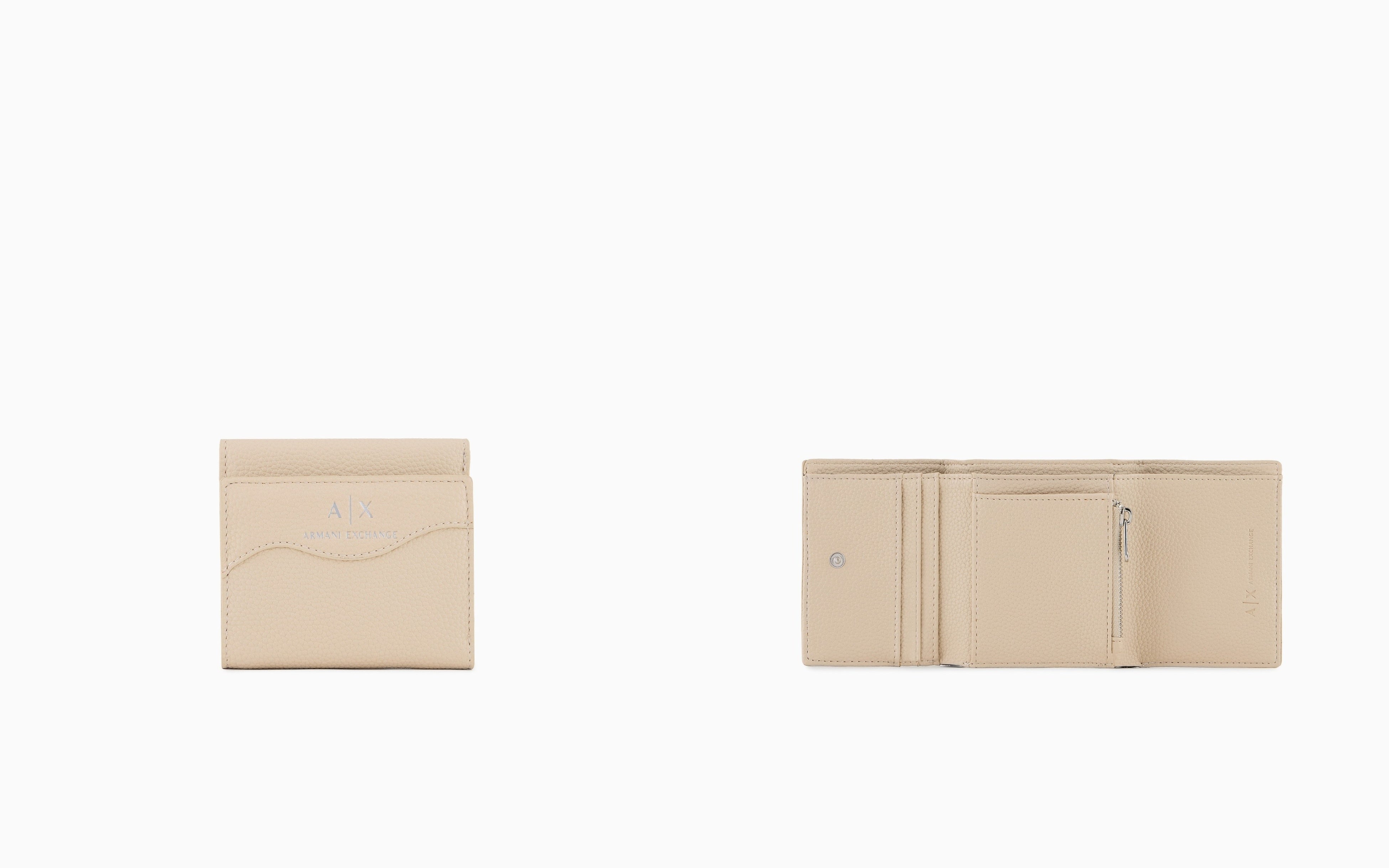 全面に施されたA|Xロゴのエンボスが、シンプルなデザインにさりげない個性を添える二つ折りウォレット。