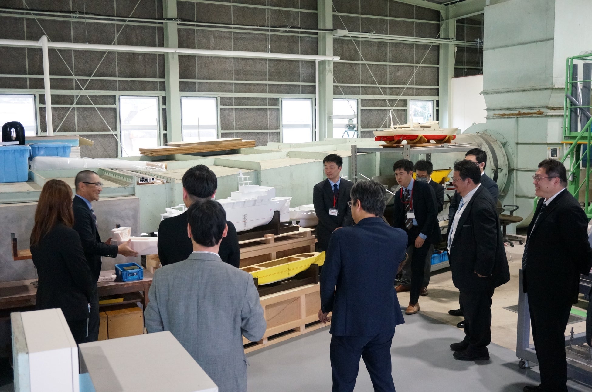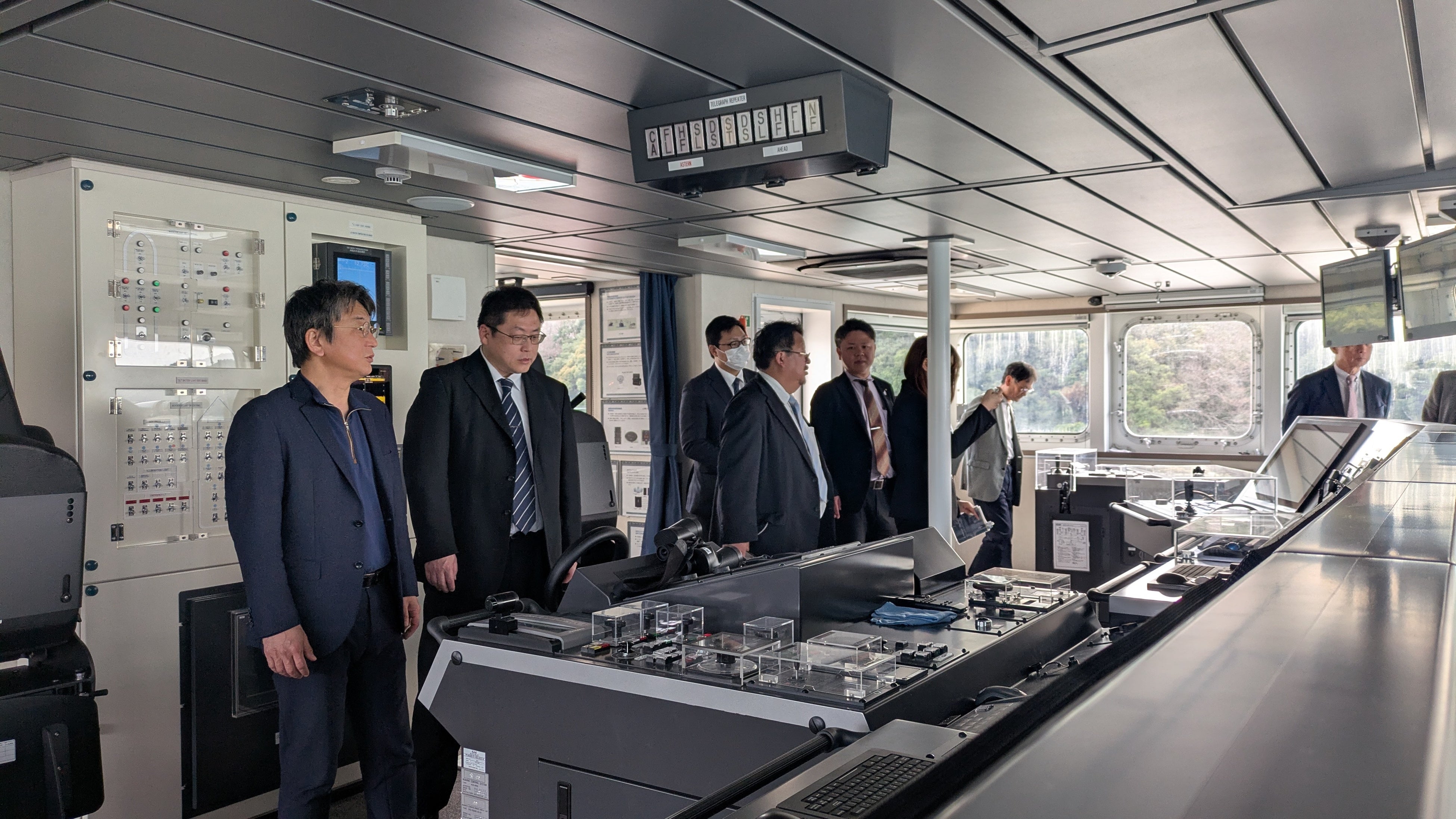 当日、参加者は鳥羽商船高専の説明を受けた後、船舶運航支援室、荒天航泊実験施設および練習船「鳥羽丸」を見学しました。古山校長(※視察当時)は「鳥羽商船高専には本プロジェクトに活用できる教育資源が多くあります。この視察が企業と学生をつなぐ契機となれば幸いです」と挨拶しました。参加者からは「設備が充実しており興味深い」、「鳥羽丸は次世代人材の育成を意識した設計で印象的だった」といった声が聞かれました。