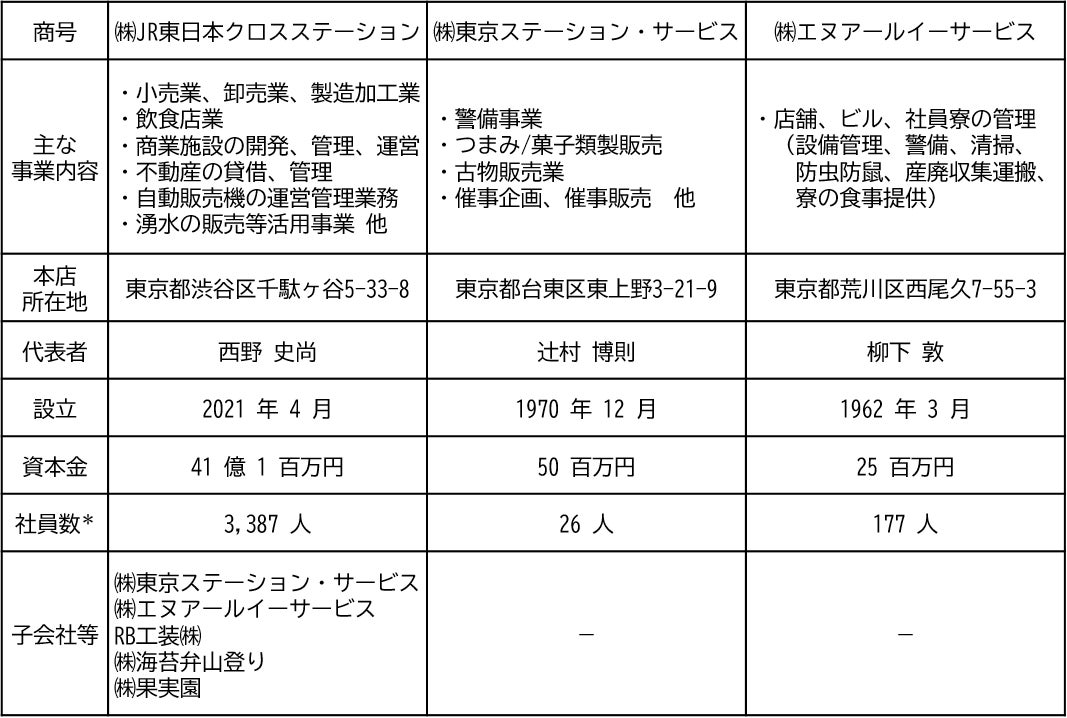 株式会社JR東日本クロスステーション、株式会社東京ステーション・サービス、株式会社エヌアールイーサービス ※各社の事業内容は次ページ参照