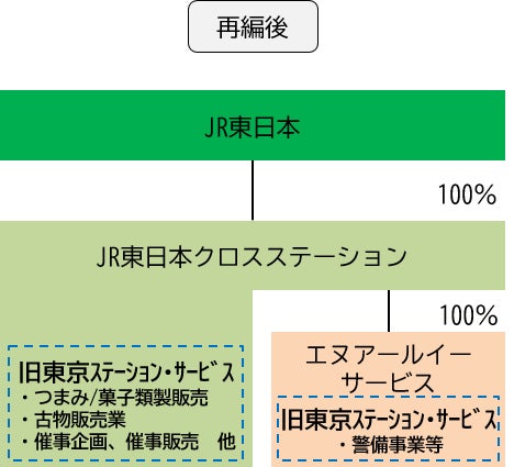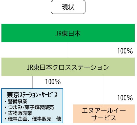 株式会社JR東日本クロスステーションを存続会社として、株式会社東京ステーション・サービスを吸収合併します。また、株式会社東京ステーション・サービスの警備事業等一部の事業を分割し、株式会社エヌアールイーサービスに承継します。