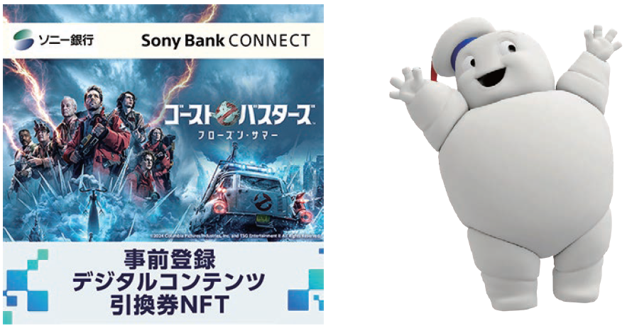 事前登録期間中に「事前登録デジタルコンテンツ引換券NFT(*3)」のお申し込みをして、アプリリリース後に「Sony Bank CONNECT」をダウンロードしたかたに、もれなく『ゴーストバスターズ/フローズン・サマー』の人気キャラクターである「マシュマロマン」の3Dコラボレーションデジタルコンテンツをプレゼントします。さらにダウンロードしたかたの中から抽選で100名のかたに「Amazonギフトカード 1,000円分」もプレゼントします。