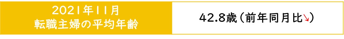 【転職主婦の平均年齢調査 2021年11月】42.8歳(前年同月比-0.1歳)
