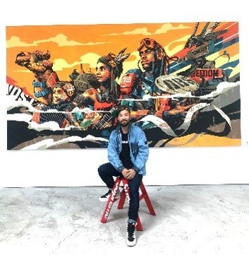 これまでに手掛けた最大の壁画は 256 フィート x 53 フィートで、2021 年にテキサス州ヒューストンで国連の委託を受けて制作された。NYのワールドトレードセンターはじめ、アメリカ48 か所で壁画を残しています。