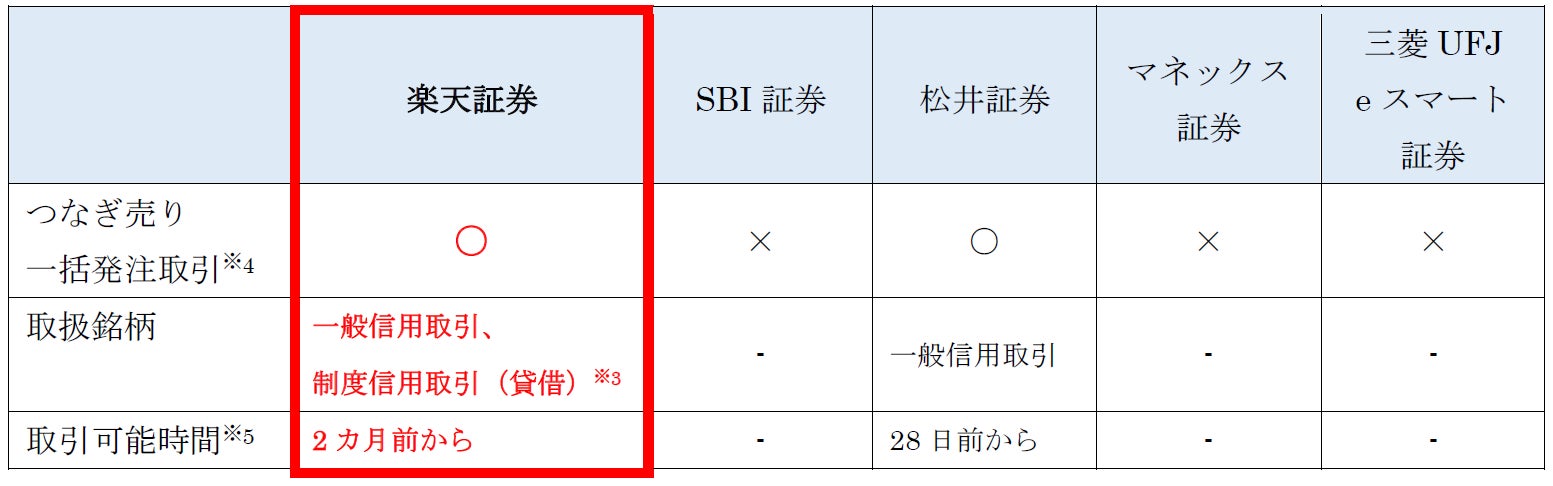 ■主要ネット証券、国内株式のつなぎ売り一括発注取引(※4) サービス比較