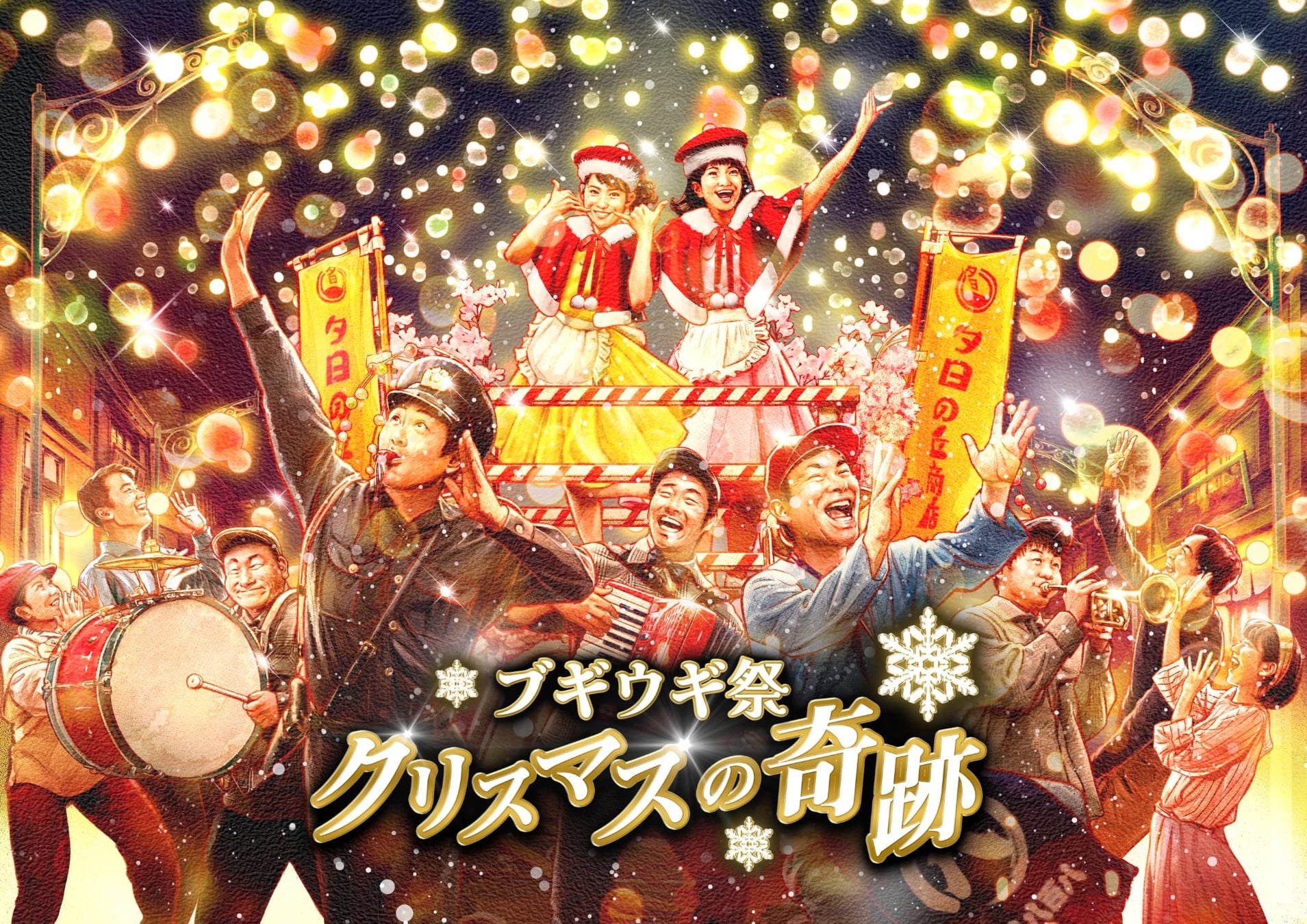 個性豊かな「夕日の丘商店街」の住人たちが、歌って踊ってゲストを巻き込む「夕日丘住人大集合 商店街名物 ブギウギ祭」に、この冬は真っ白な雪が舞い降ります!期間限定クリスマスバージョンの「ブギウギ祭 クリスマスの奇跡」では、赤や緑のクリスマスカラーが灯る電球のあたたかな光の中、クリスマスならではの楽曲にのせ、華やかな衣装を身にまとった住人たちが、この季節ならではの特別な空間へとゲストを誘います。クライマックスには真っ白な雪が舞い、賑やかなだけではない、ノスタルジックで心あたたまる体験をお届けします。