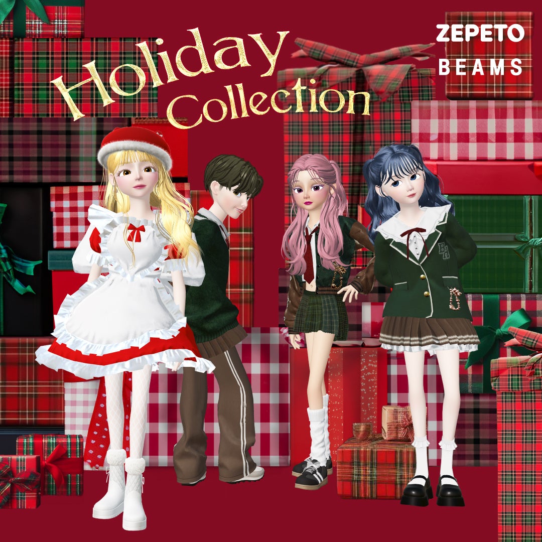 株式会社ビームス(本社:東京都渋谷区、代表取締役社長:設楽洋)は、NAVER Z Corporation(本社:韓国、共同代表:キム・デウク、キム・チャンウク、以下NAVER Z)が運営する、全世界で4億6000万人のユーザーが参加するアジア最大規模のメタバースプラットフォーム『ZEPETO(ゼペット)』にて、アプリ内で楽しめるアバター用ファッションアイテムのコレクション第3弾として〈BEAMS HEART(ビームス ハート)〉と『ZEPETO』の人気クリエイター・jack、SASAKIの2名がコラボレーションし制作した「Holiday Collection」を12月4日(月)11時00分より販売します。“ホリデー”をテーマにした「SEASON ITEM」2点と、“学生服”をモチーフにした「SCHOOL ITEM」3点の計5点を販売します。さらに、『ZEPETO』内で利用可能な通貨やBEAMS GIFT CARDが当たる投稿キャンペーンとして、ホリデーにちなんだキャンペーンイベント『BEAMS 放課後クリスマスパーティー』を12月4日(月)〜12月17日(日)にアプリ内で開催します。