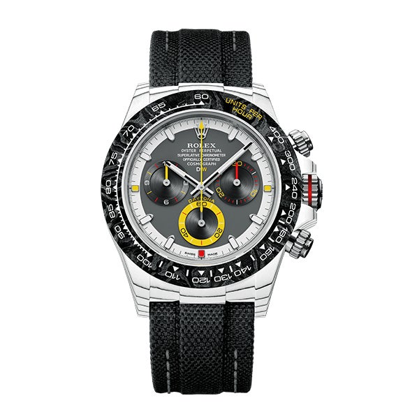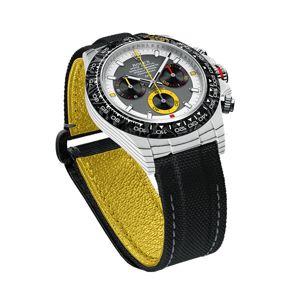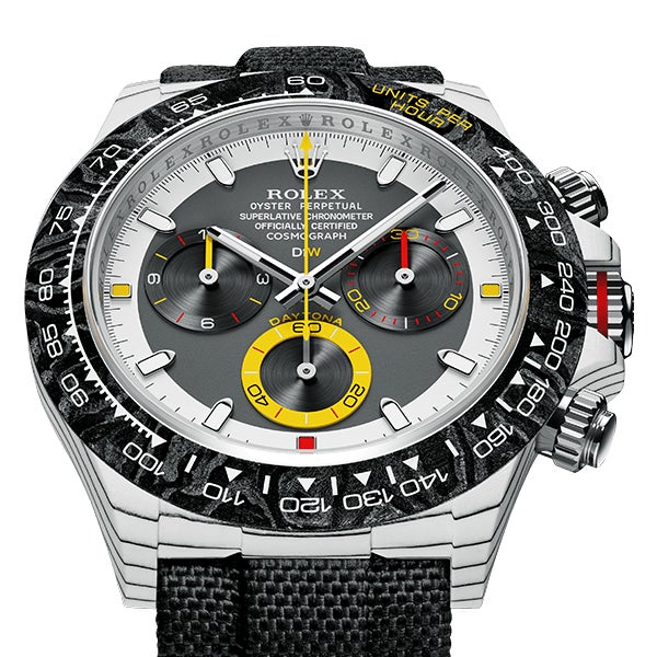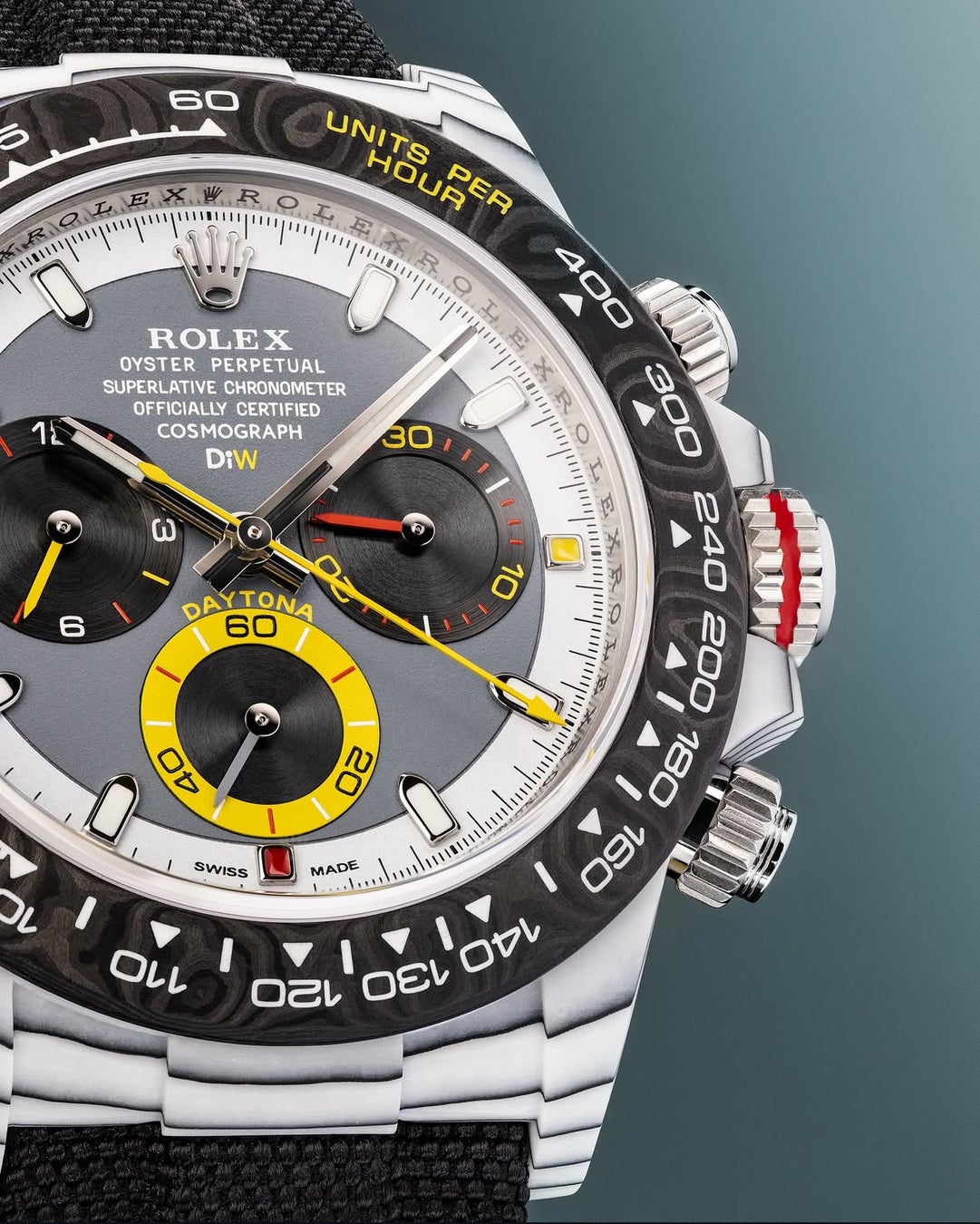 カスタム時計メーカー「DiW」から、モータースポーツの情熱を注ぎ込んだ「CARBON ROLEX DAYTONA QUANTUM RACER」が登場。静寂を破るエンジンの轟音、灰色のアスファルトを切り裂く鮮やかな黄色の閃光、そのダイナミックな瞬間をこの時計は見事に表現しています。スピードと精密さが交差し、コントロールと混沌が共存するスリルなレーシングの世界を手元で感じられる一本です。