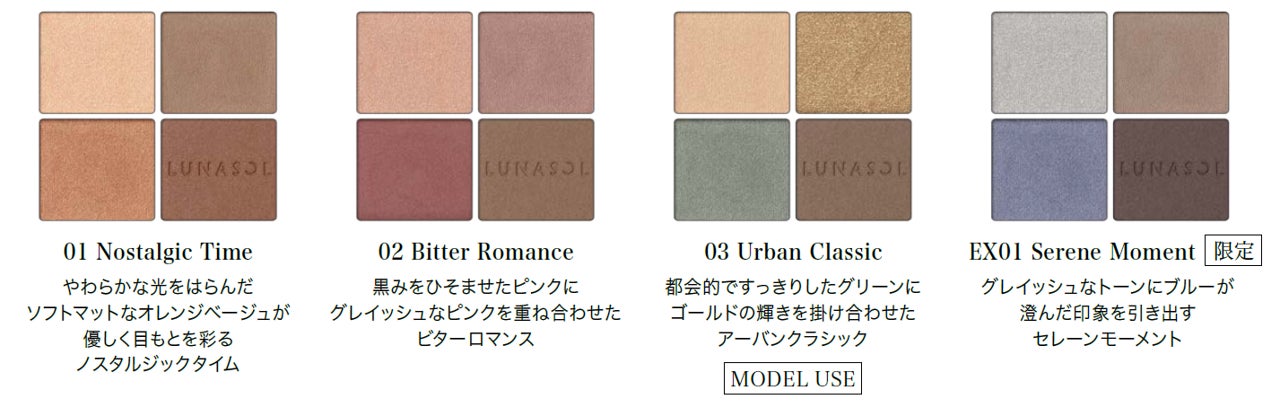 ◆ルナソル アイカラーレーションN 全4種(うち限定1種) 7,700円(税込)
