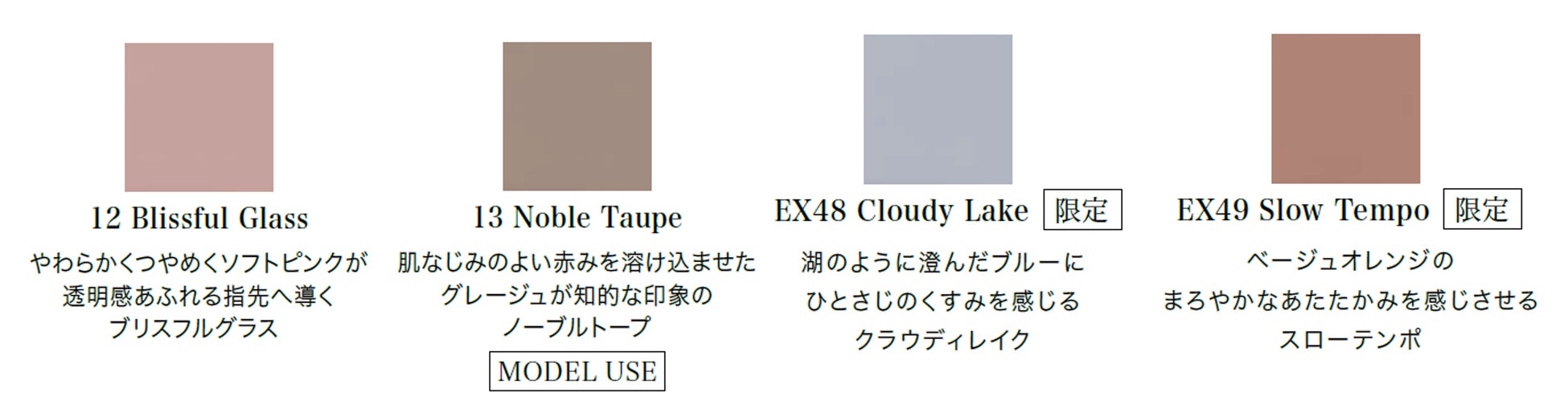 ◆ルナソル ネイルポリッシュ 新色4色(うち限定2色) 2,200円(税込)