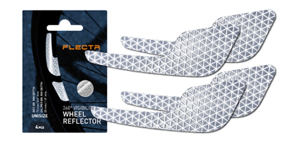 「FLECTR 360 WING(フレクター ・スリーシクスティー・ウィング)」は、タイヤのリムに貼るだけで360°の視認性を確保できる自転車用リフレクター。
