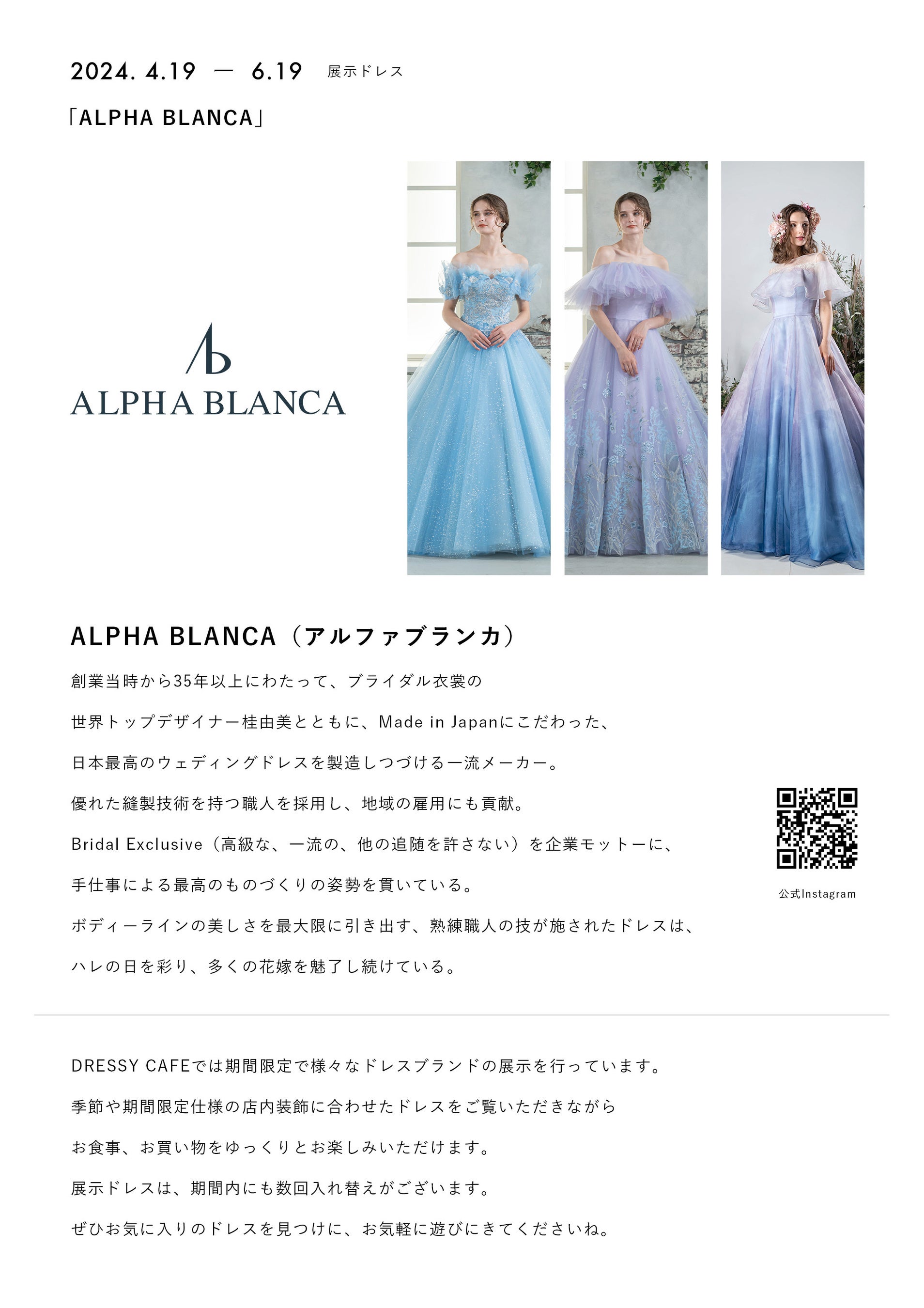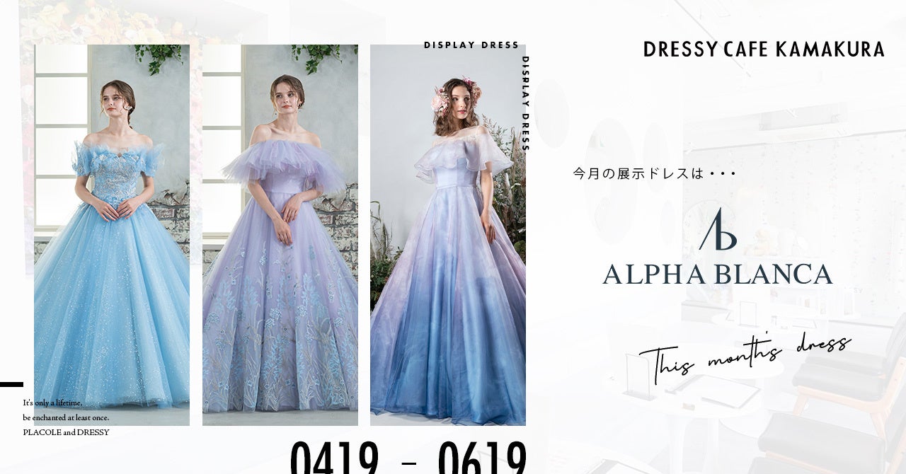 【DRESSY CAFE KAMAKURA】春のディスプレイドレスは「ALPHA BLANCA」のウェディングドレスを期間限定でお届け!紫陽花カラーのドレスを楽しんで