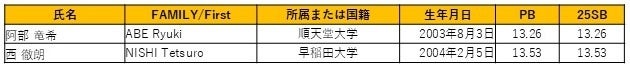 ▼出場選手発表第1弾:男子110mハードル、男子400mハードル、女子100mハードル