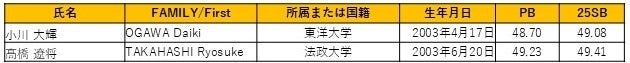 男子400mハードルには、パリオリンピック代表の小川大輝(東洋大学)が出場。世界基準で鍛えられたその走りに注目が集まります。