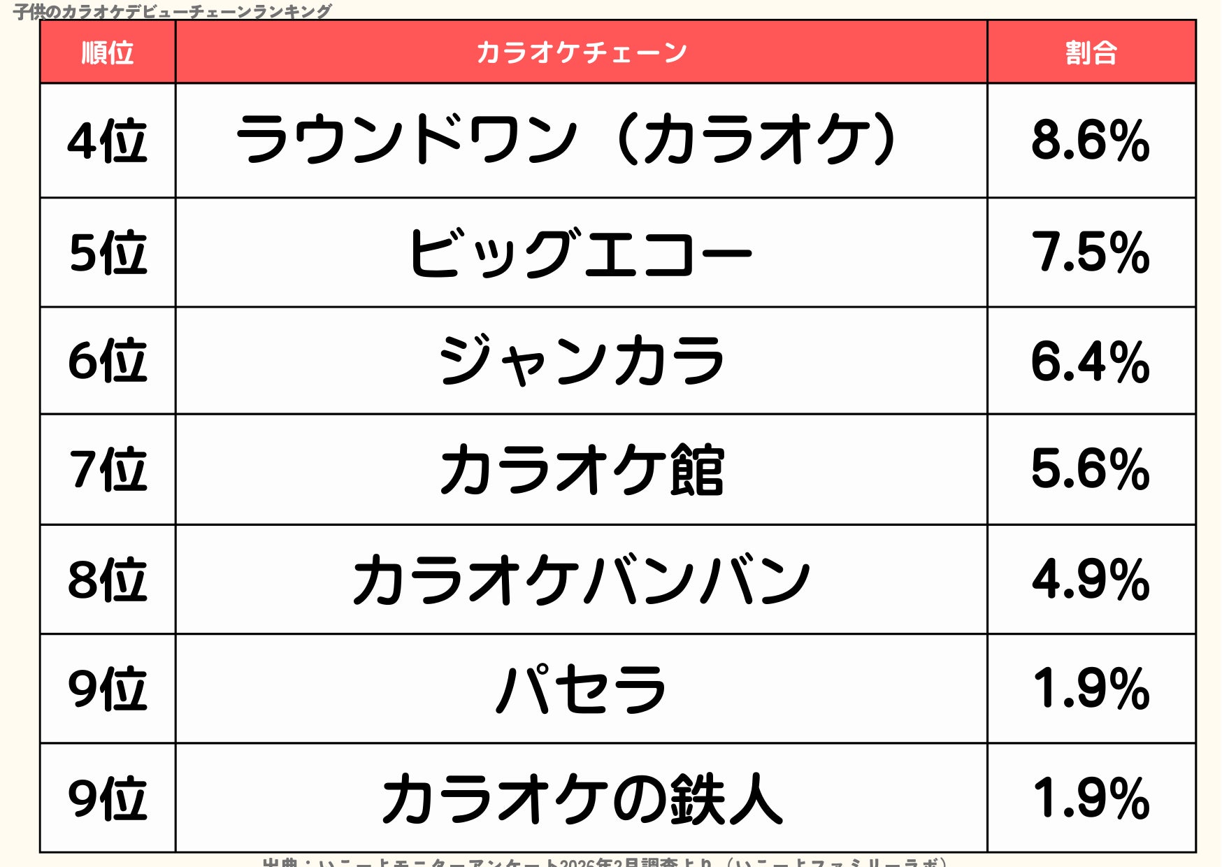 ⑪子供のカラオケデビューチェーンランキング(https://iko-yo.net/articles/22210)本調査