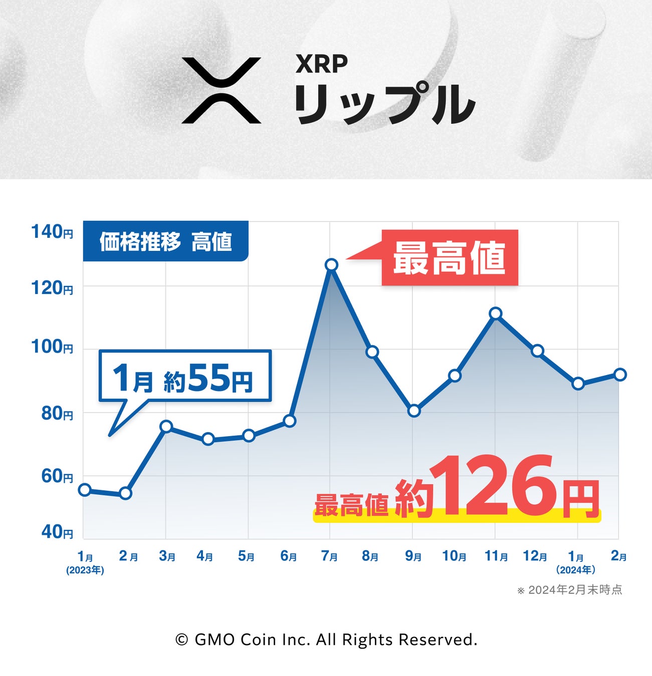 GMOコインは2023年1月から2024年2月のビットコイン(BTC)、イーサリアム(ETH)、リップル(XRP)の1年間を振り返り、価格推移と主な出来事をまとめたインフォグラフィックをご紹介します。