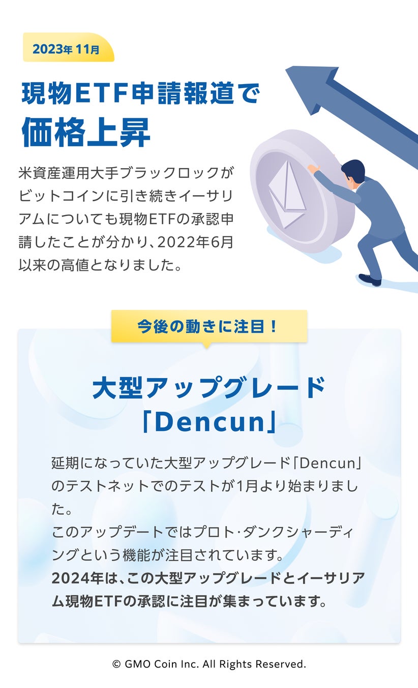イーサリアム(ETH)の大型アップデート「Dencun」の詳細については、以下をご参照ください。