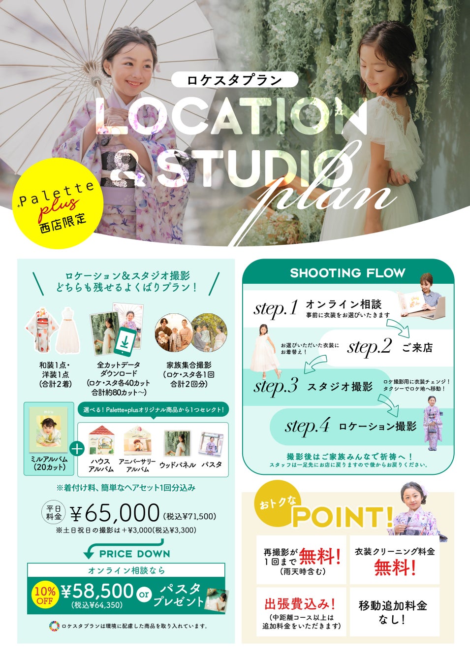 北海道札幌市に3店舗展開するPalette Plus 札幌西店から新プランのご案内。ロケもスタジオも、和装も洋装も、七五三の全てをとことん楽しめるロケスタプランのご提案です