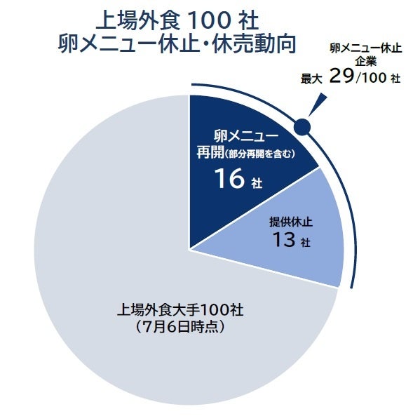 「上場主要外食100社」卵メニュー休止状況調査(2023年7月)