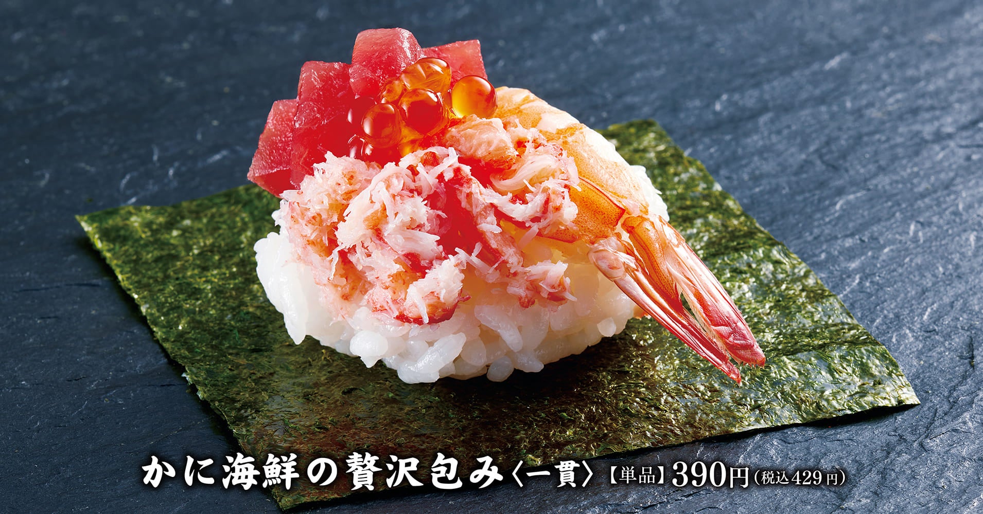 引き締まった身と上品な旨味が絶品な「ふぐ握り」、かに・いくら・海老・鮪、4つの食材が入った、色鮮やかで贅沢な「かに海鮮の贅沢包み」、濃厚な甘味と旨味が特徴の「北海道産 ほたて握り」をご用意いたしました。寒い冬にぴったりの旬の味覚をご堪能ください。数量限定のため、この機会をお見逃しなく!