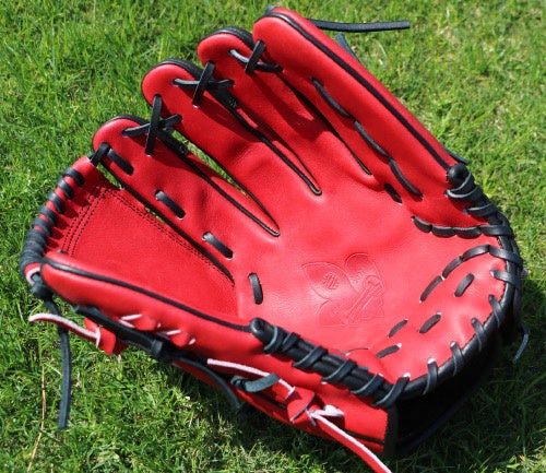 グラブ本体はレッドで縫い糸をブラックに。ツエーゲンカラーをベースとしたグラブのウェブ部分には刺繍で、捕球部には刻印でそれぞれロゴを配置。背面の親指つけね部には、ZWEIGEN KANAZAWAと刺繍。天然皮革のオールラウンドモデル。このタイミングでしか買えないアイテムです。