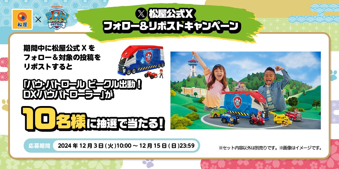 松屋フーズ(本社:東京都武蔵野市、代表取締役社長:瓦葺一利)では、2024年12月3日10時より、牛めし・カレー・定食・その他丼の「松屋」において、「パウ・パトロール」とのコラボ企画を開始いたします。