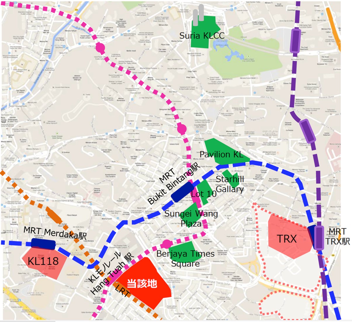 本物件は、クアラルンプール中心市街地の大規模街づくりプロジェクト「ブキッ・ビンタン シティ センター プロジェクト(以下、「BBCC プロジェクト」)」内に所在しており、LRT・モノレール「ハントュア」駅に直結、「ハントュア」駅から主要ターミナルの「KLセントラル」駅まで3駅・6分という高い交通利便性を備えています。