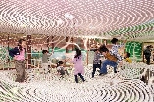 まるでジャングルのような立体のネット遊具。登って遊んだり、ネットの中で跳ねて遊んだりするうちに、体を思いっきり動かしてバランス感覚が育ちます。