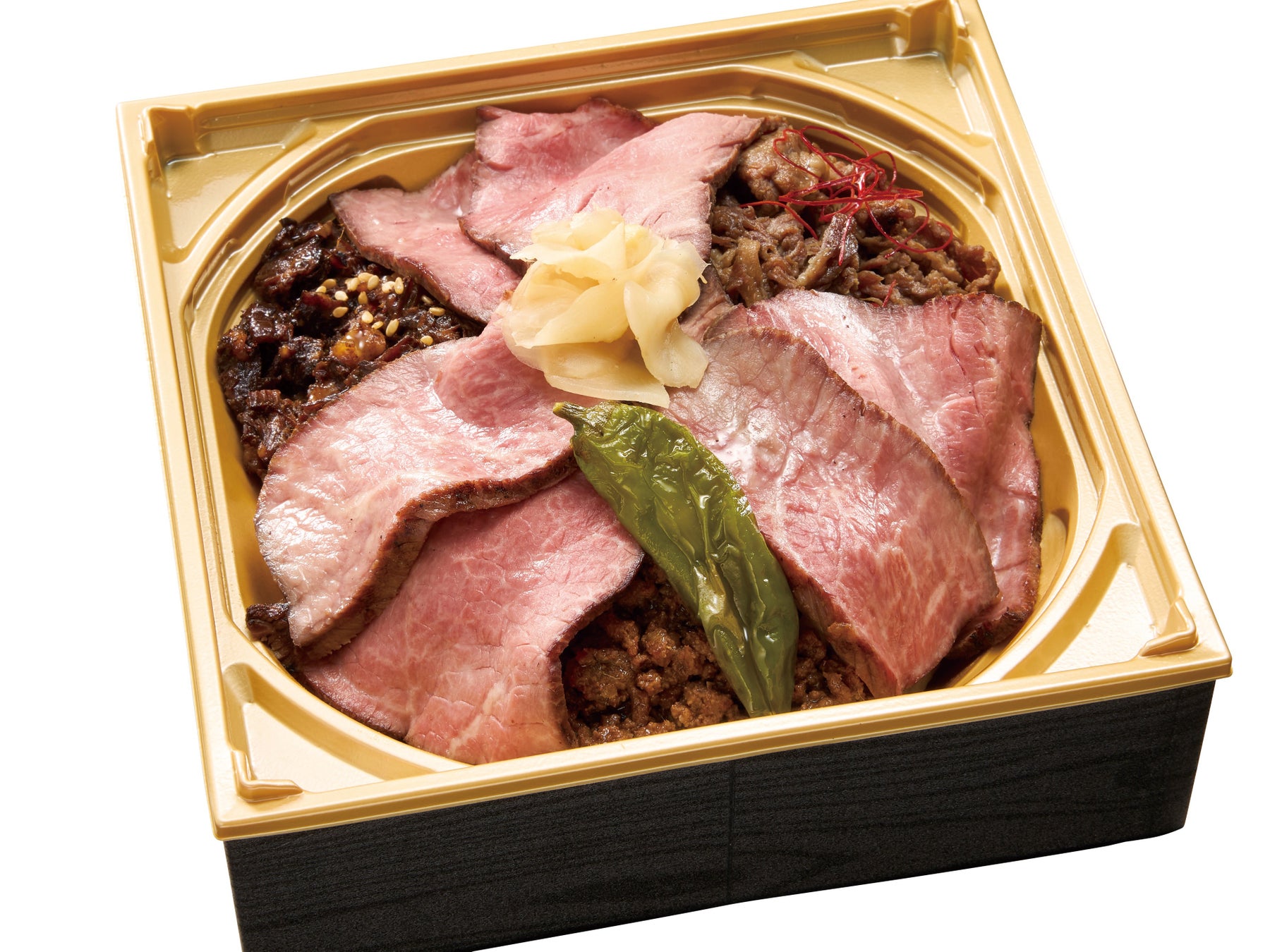 人気商品が復活!柔らかく仕上げた低温調理ステーキ、網焼きの焼肉、牛そぼろ、赤身すじの煮込みの4種類の肉料理をのせた、贅沢な4色弁当。まさに「肉まみれ」を実感できる、お肉好きにはたまらない一品です。