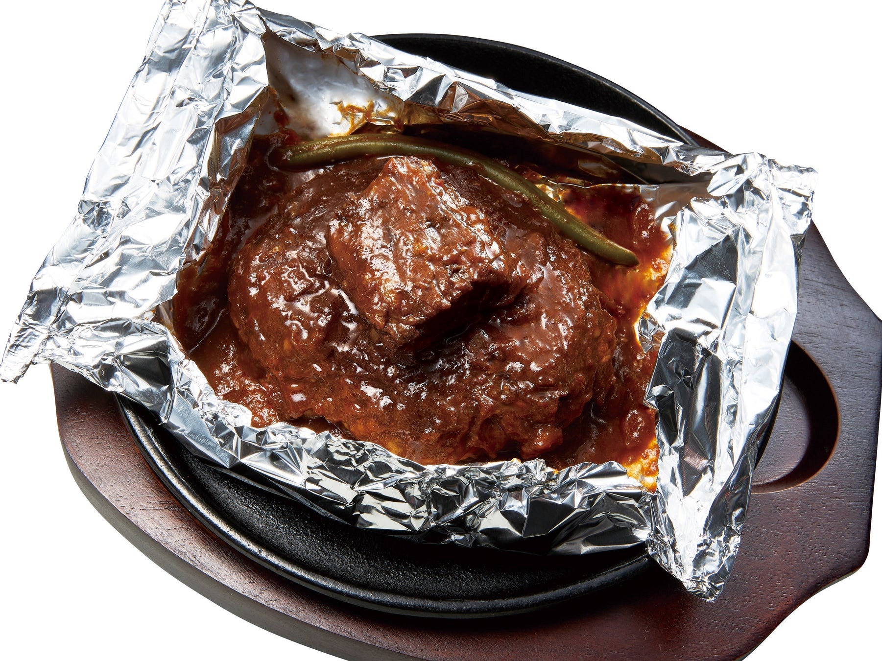 レストランで一番人気のつばめ風ハンブルグステーキと同じサイズの、うれしいボリューム感!ハンブルグステーキは店内キッチンで挽き肉にするところから手作りし、一つ一つ焼き上げ、自家製のビーフシチューをかけてアルミホイルで包んでいます。※販売時間:9:00~