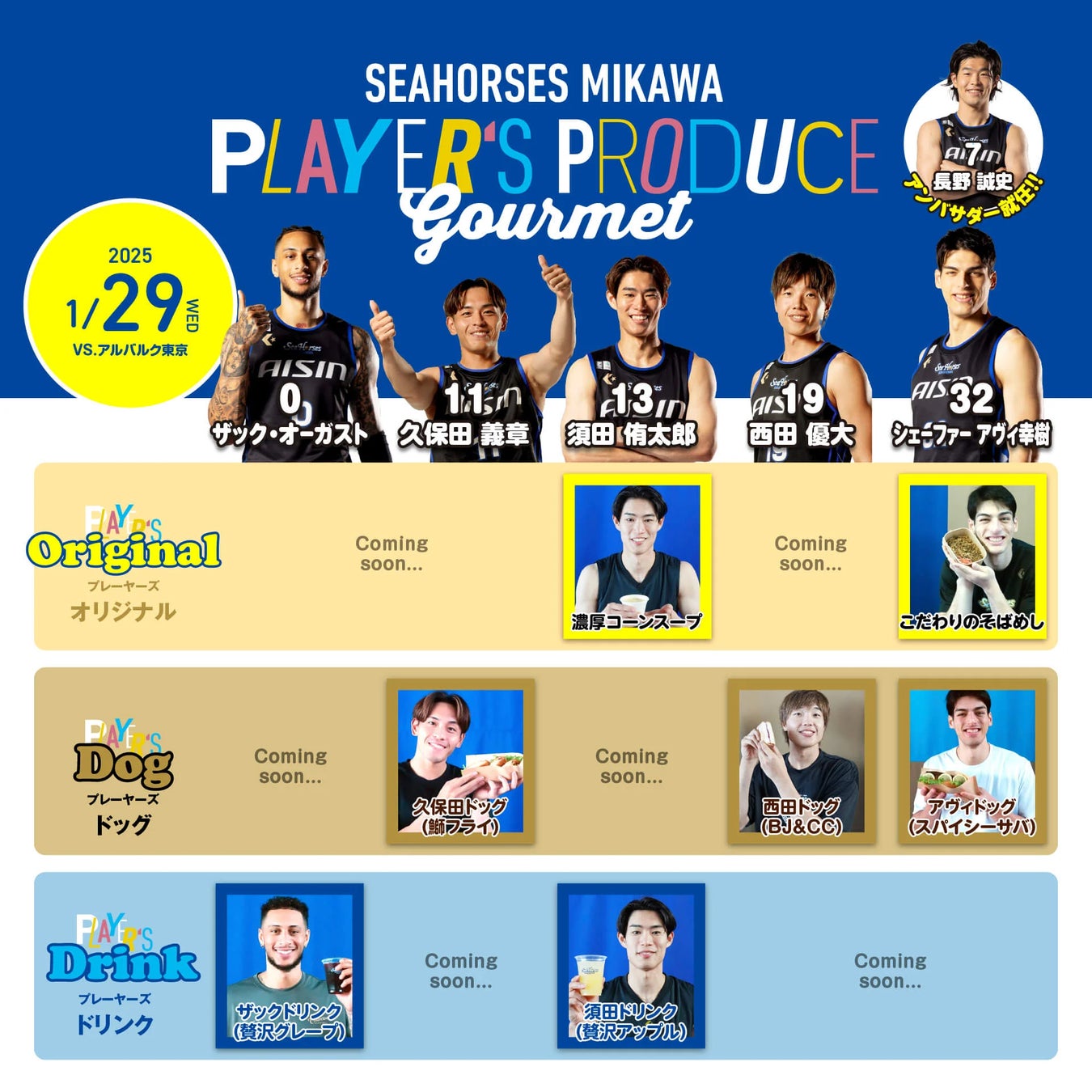 【グルメ情報】1/29(水) 選手プロデュースグルメ発売!!