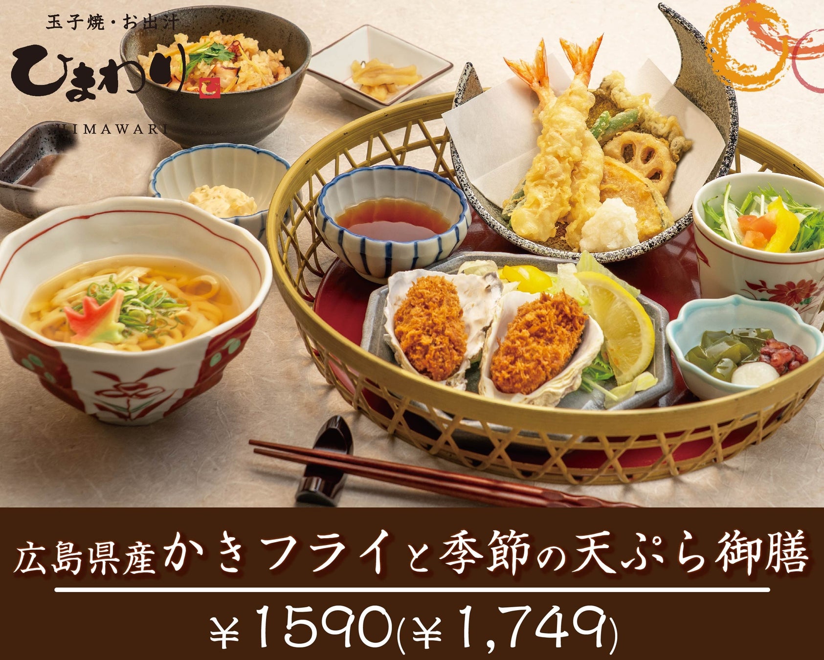 ●広島県産かきフライと季節の天ぷら御膳 1,590円(税込み1,749円)