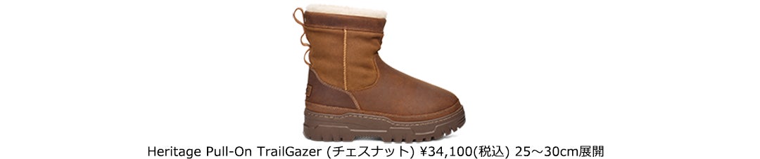 ● Heritage Pull-On TrailGazer(ヘリテージ プルオン トレイルゲイザー)は、マイナス20ºC の寒冷地でも足を暖かく保つ高い防寒性を備えたブーツ。防水フルグレインレザーのアッパーにシームシールド構造で、高い防水機能を誇り、悪天候でも足元を保護。履き口にはシープスキンのライニング、内側にはソフトな UGGplush™ ブレンドのライニングを施し、UGG ならではの贅沢な心地よさが足元を包み込みます。アウトソールには、グリップ性を高めるホワイトスパイダーラバーを採用しているので滑りやすい路面でも心強い一足。