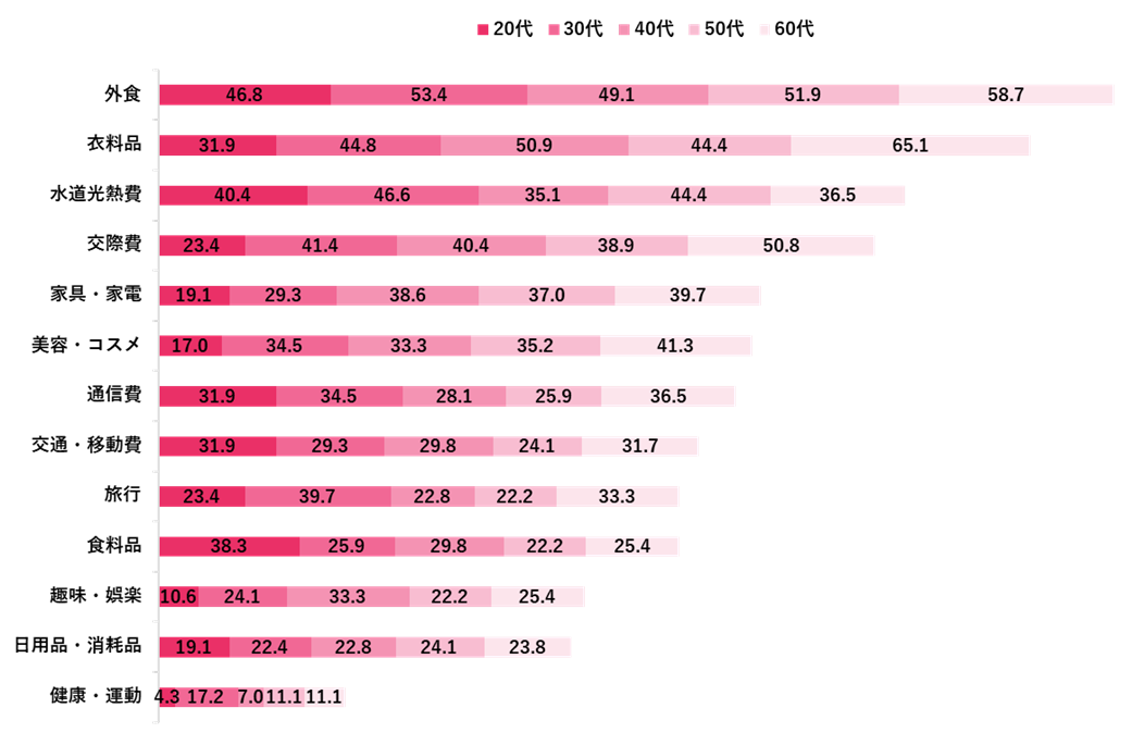 特にお金を掛けたくないもの1位「外食」、2位「衣料品」、3位「水道光熱費」