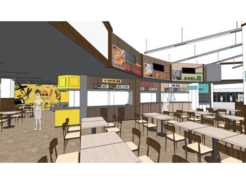 今回リニューアルするフードコートでは、幅広いお客さまに支持されている人気の唐揚げ店『金のとりから』が新規出店するほか、信州の魅力を味わえる「ソースカツ丼」や「信州そば」を刷新します。
