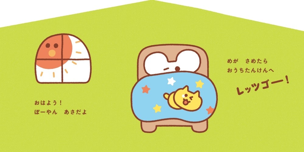 朝「おはよう」と起きる場面から、夜「おやすみ」と寝る時間までの過ごし方について、絵本を通して理解することができます。ぽーやんといっしょに1日を楽しむことができ、何度でもリピート読みしたくなる一冊です。