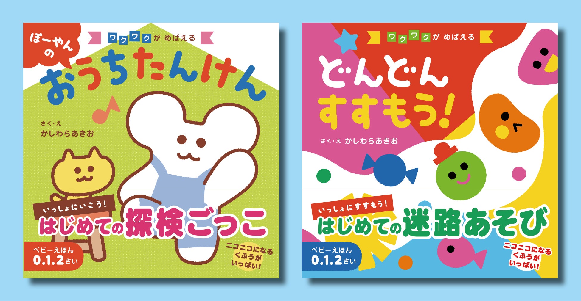 ベビーえほん・ワクワクがめばえるシリーズは、ママ編集者が、自ら子育てを経験する中で感じたことを活かし「楽しく何度も読みたくなるようなベビーえほんを作りたい!」という思いから企画、絵本作家かしわらあきおさん作の絵本として、2022年11月『にょっきりん どこどこ?』『ねこさん のってくださーい』の2点を発売、おかげさまでご好評をいただいてまいりました。