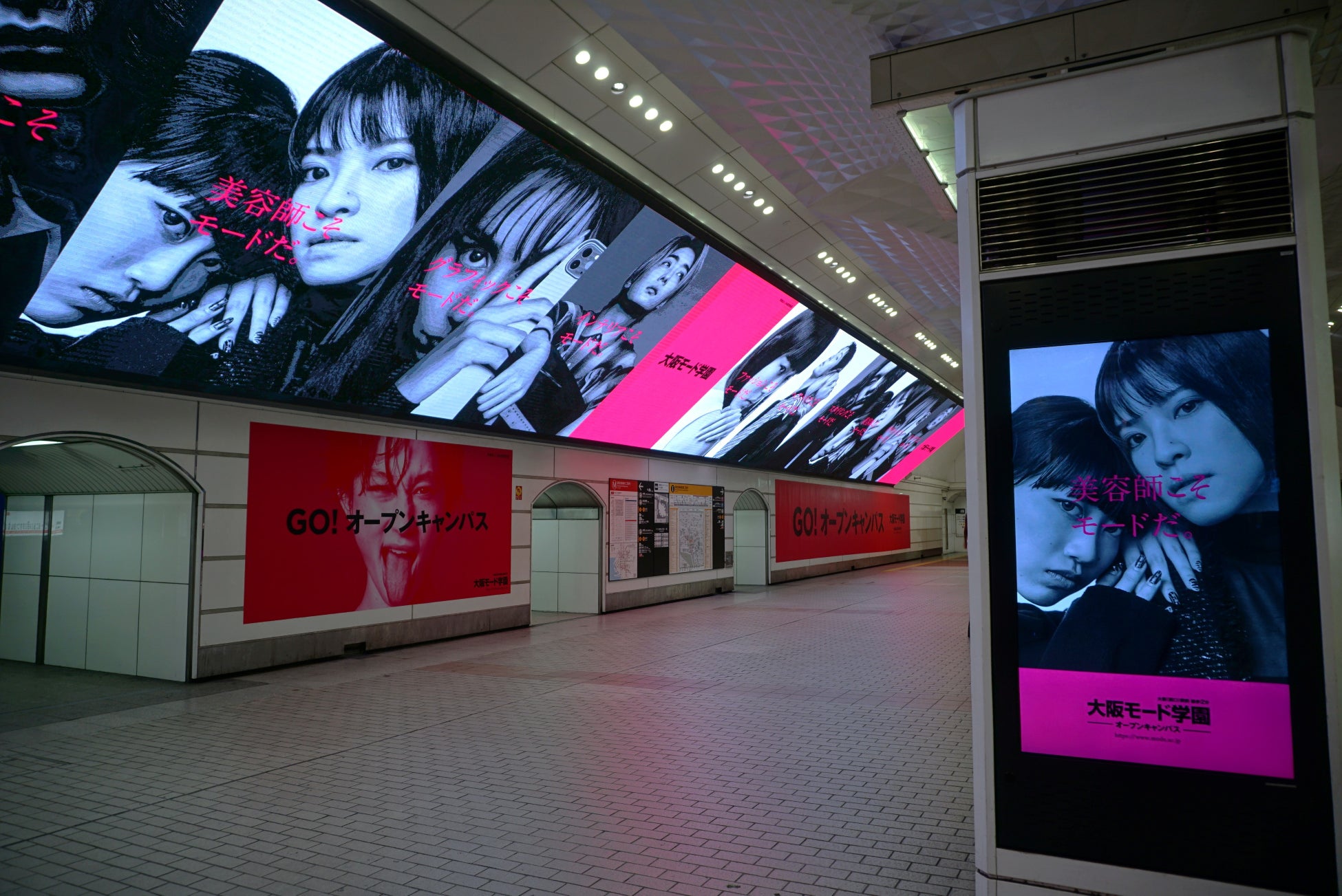 ファッション・デザイン・ビジネスからインテリア、グラフィック、美容師のプロを育てる専門学校「大阪モード学園」は、Osaka Metro梅田駅にて7月8日から7月14日までの1週間、夏のオープンキャンパスの告知キャンペーンとして、デジタルOOHおよびOOH広告を使用したジャック広告を展開しました。これに伴い、広告会社の大阪メトロアドエラと共同し、ジャックした駅空間に大阪モード学園の学生がデザイン・制作した巨大なファッション作品とAIが生成した3Dチェアオブジェクトが展示されているシュールOOH(フェイクOOH)動画を7月24日よりオンラインで公開しました。