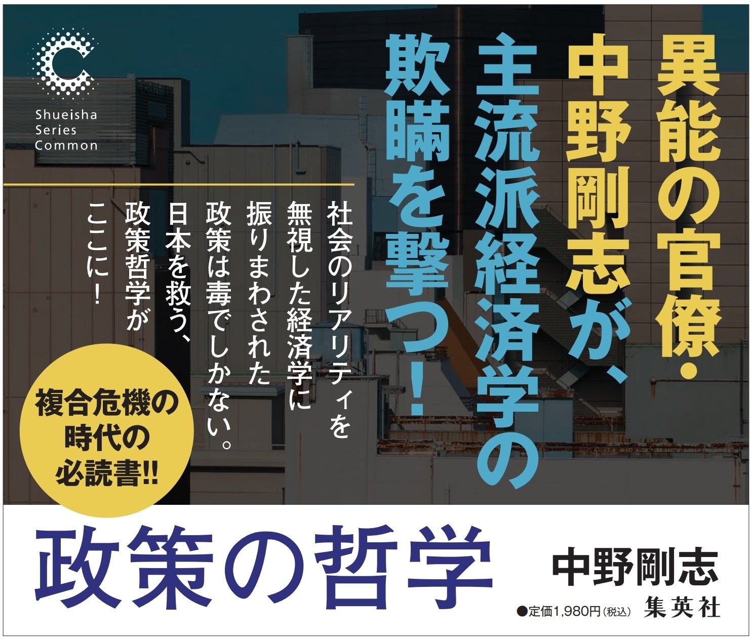ベストセラー経済書を数々生み出してきた中野剛志氏。日本経済停滞の真の原因を解き明かす『政策の哲学』を集英社シリーズ・コモンより刊行。