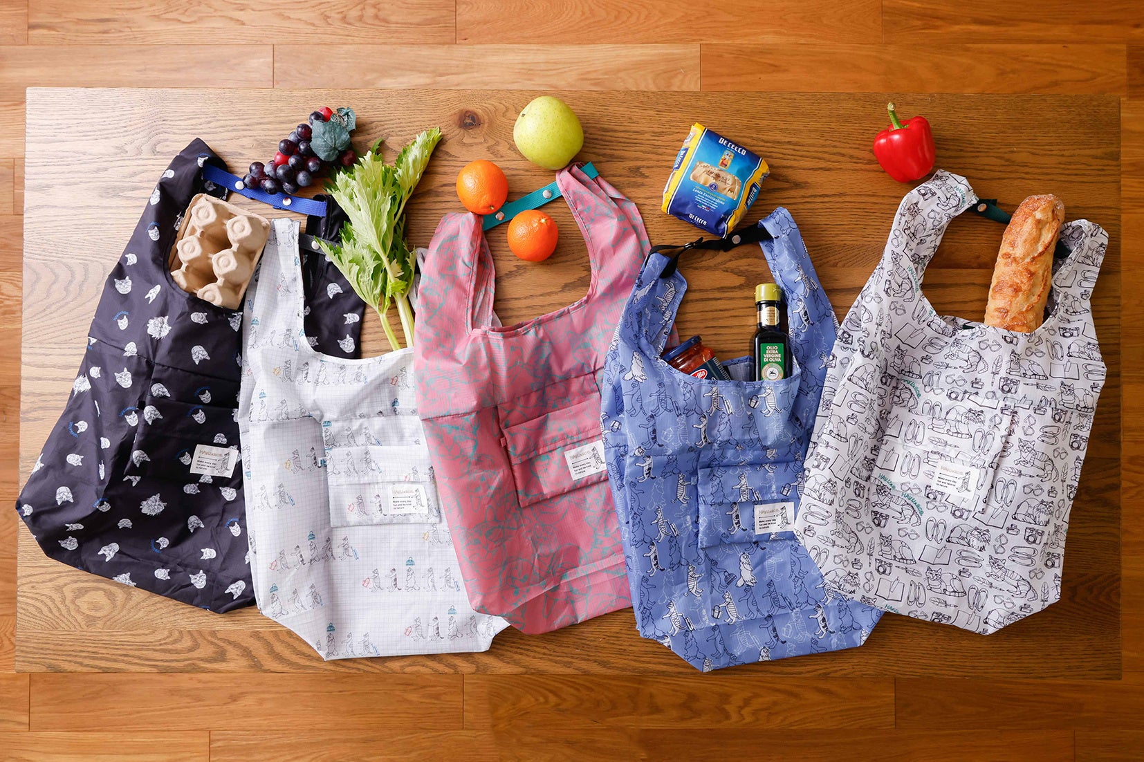 荷物が増えた時に役立つ、小さく折り畳めるパッカブルトート。無地と猫柄の2タイプで、無地は内装に猫柄生地を使用しています。
