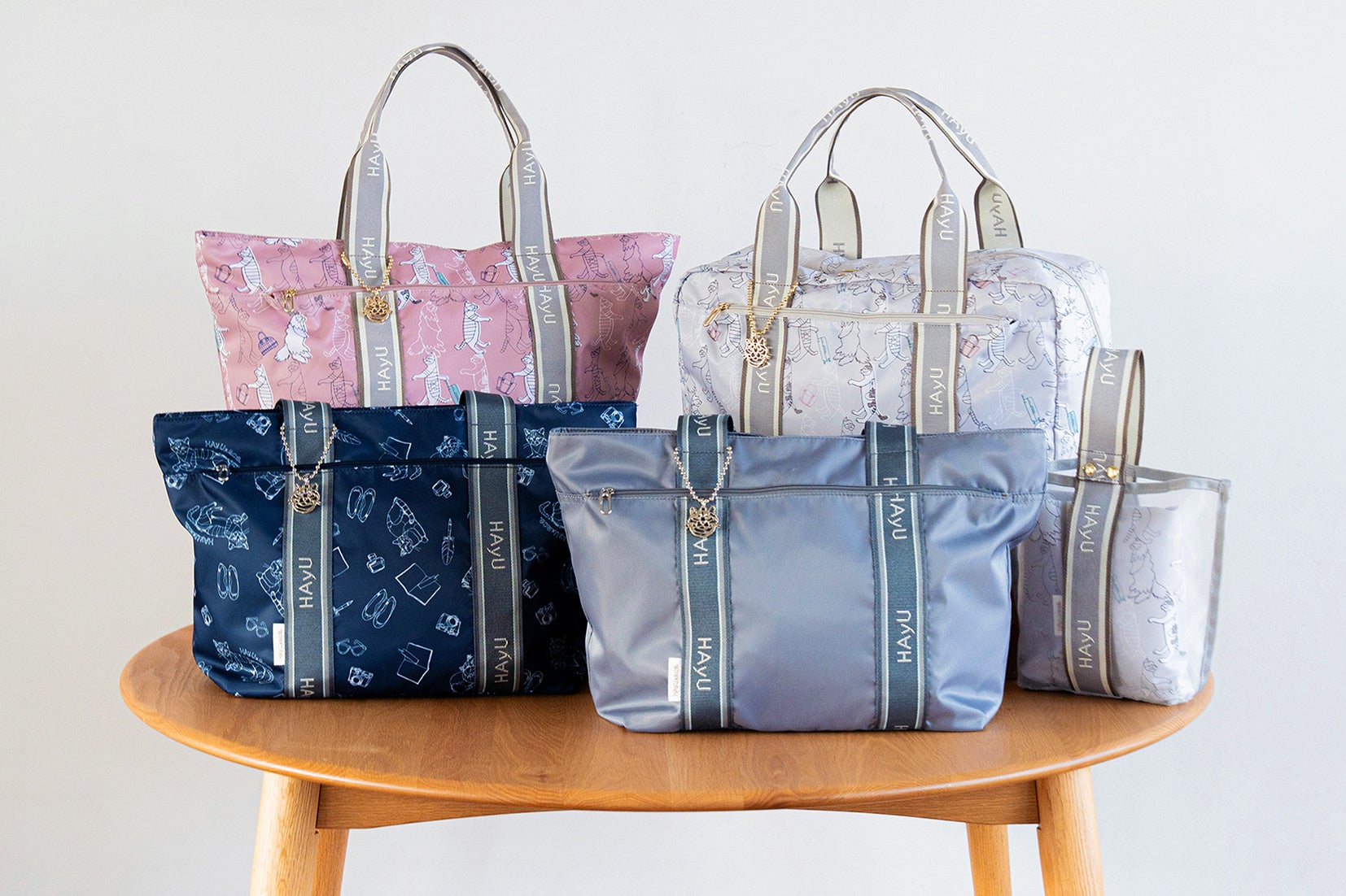 シンプルなシルエットのバッグ&トローリー。HAyUを象徴するアニマルヘッドから起こした柄を採用し、世界観を表現しました。