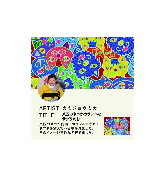 本商品の売上の一部はロイヤリティとしてパラリンアート事務局を通じてアーティストの生活支援に役立て、活動の場を広げるとともに、共生社会の実現に貢献してまいります。