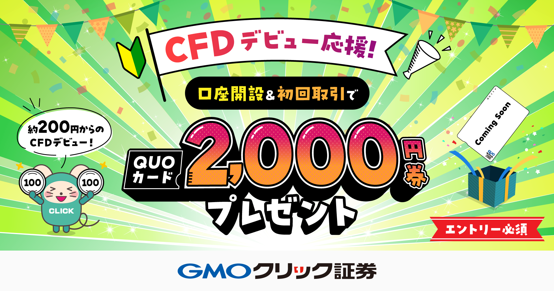 【CFDデビュー応援】QUOカード2,000円券プレゼントキャンペーン!
